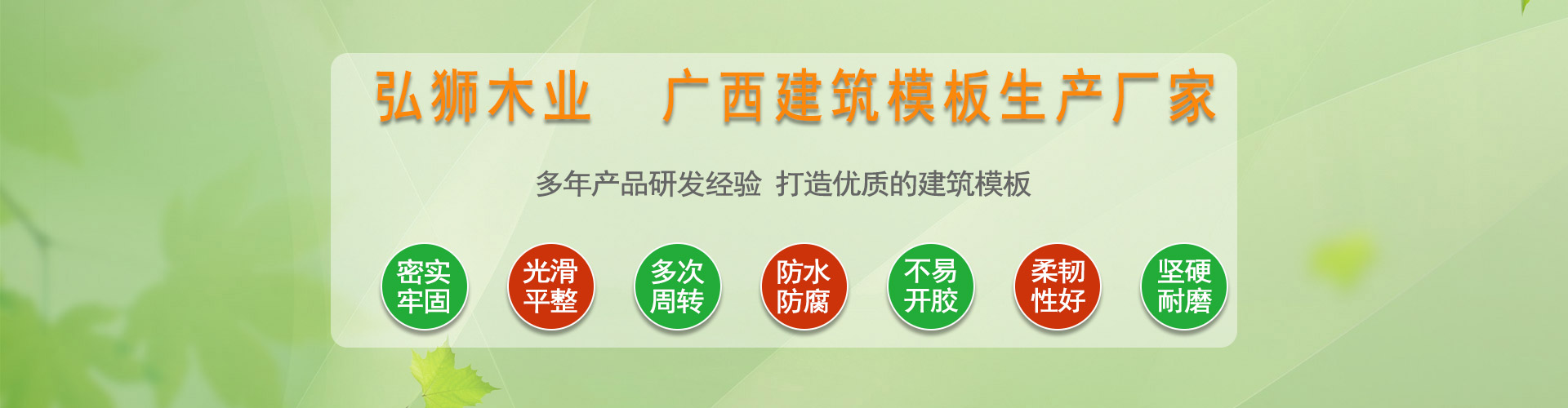 廣西弘獅木業(yè)有限公司是一家專業(yè)從事建筑模板研發(fā)、制造的綜合性高新技術(shù)企業(yè),自成立以來一直致力于建筑模板的研發(fā)、生產(chǎn)、銷售,公司擁有200畝的刨板、曬板基地和100畝的模板生產(chǎn)車間,目前擁有50條專業(yè)生產(chǎn)線,日產(chǎn)量達到4萬張/日。公司從采購木材到生產(chǎn)模板都嚴格執(zhí)行,所有成品都要經(jīng)過嚴格檢測才安排給客戶發(fā)貨。